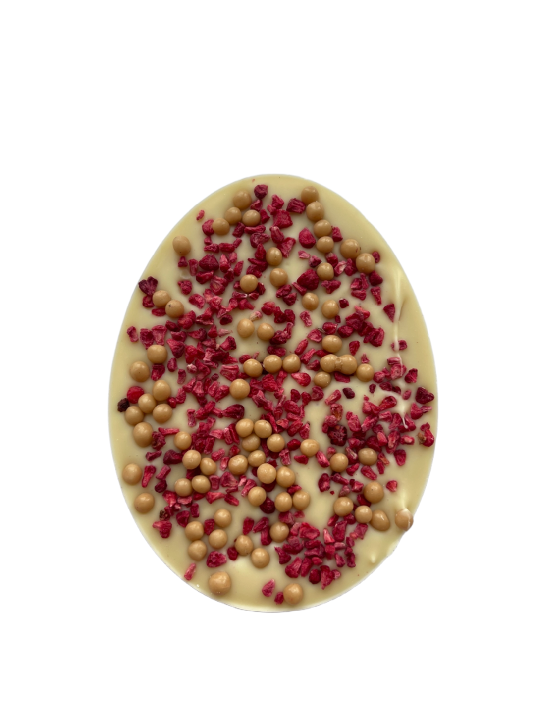 Cena produktu Czekolada artystyczna ręcznie robiona biała z owocami liofilizowanymi – JAJKO 90g w przeliczeniu na 1 kg = 277,78 zł/kg