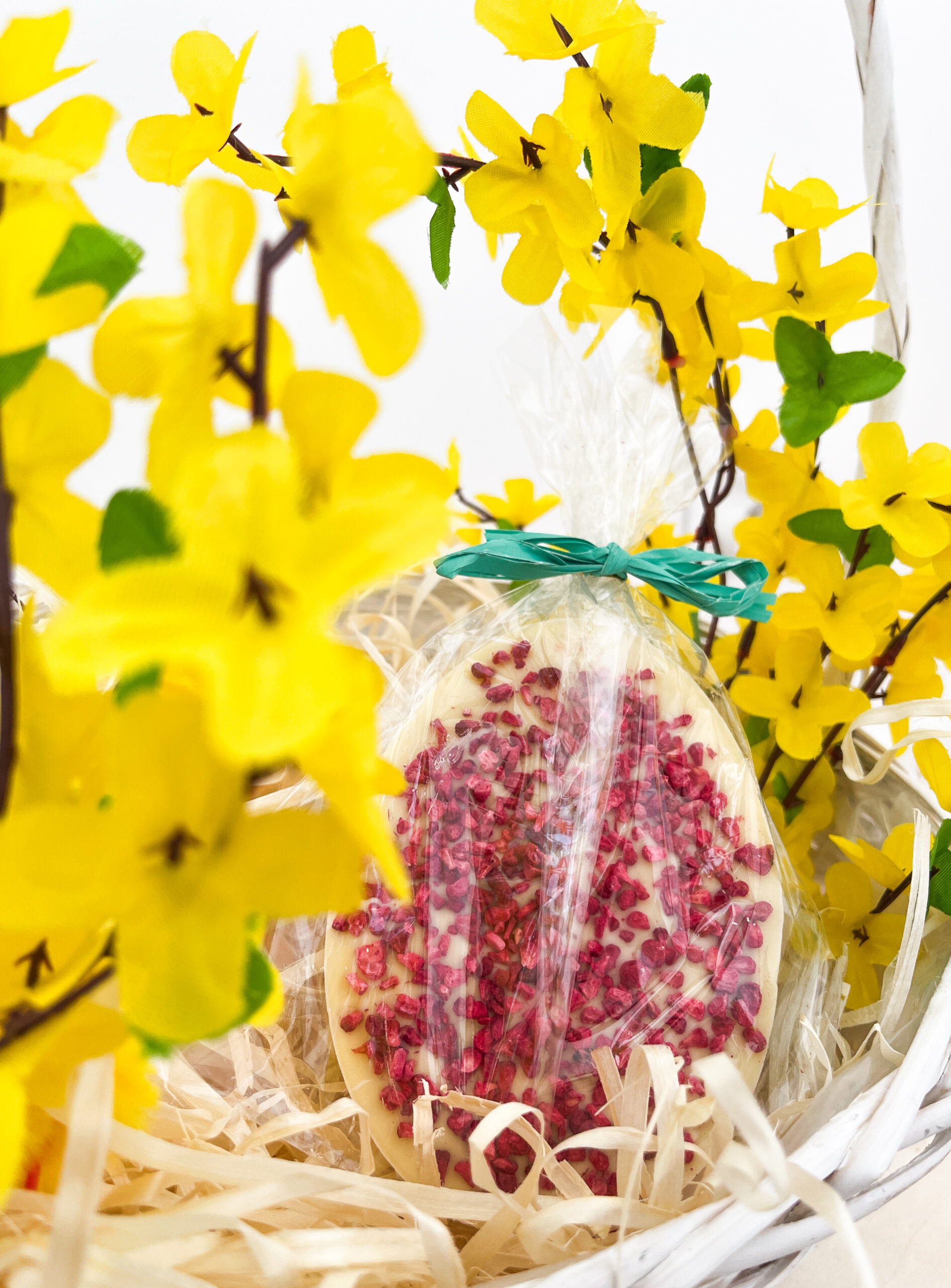 Cena produktu Czekolada artystyczna ręcznie robiona biała z owocami liofilizowanymi – JAJKO 90g w przeliczeniu na 1 kg = 277,78 zł/kg